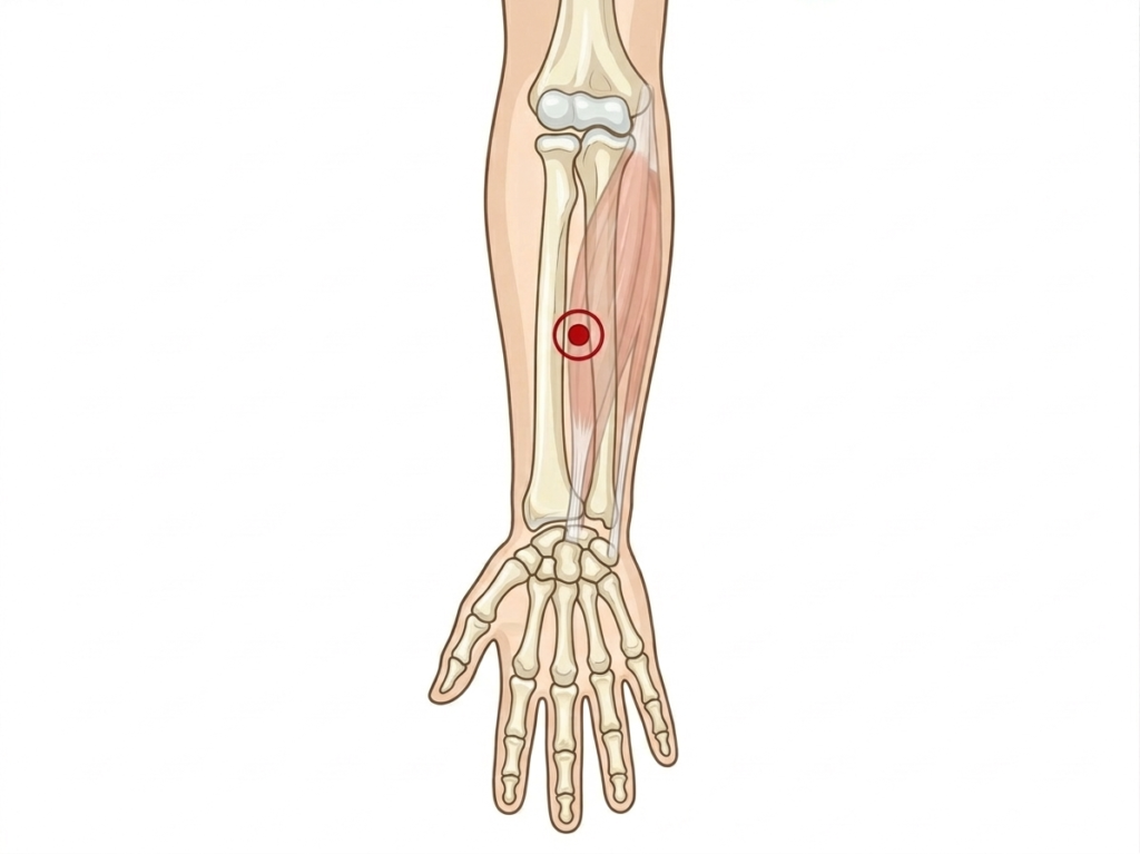 場所は、手のひらを上に向けたときに、手首とひじのちょうど真ん中あたりにあります。