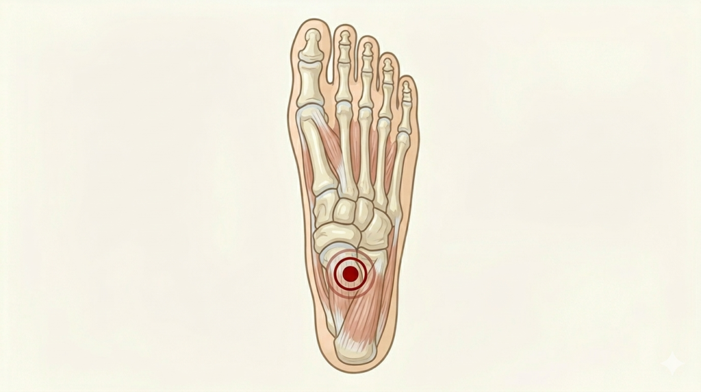場所は、足の裏のかかとの真ん中あたりにあります。押すと少しジーンとするところが目印です。